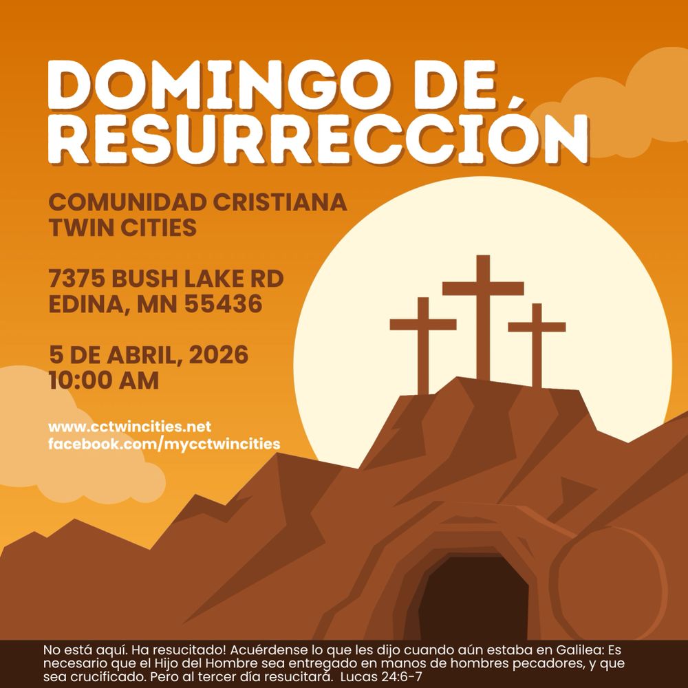 Nos faltes a nuestros servicios todos los domingos a las 10:00 AM en CC Twin Cities: 7375 Bush Lake Rd. Edina, MN 55439